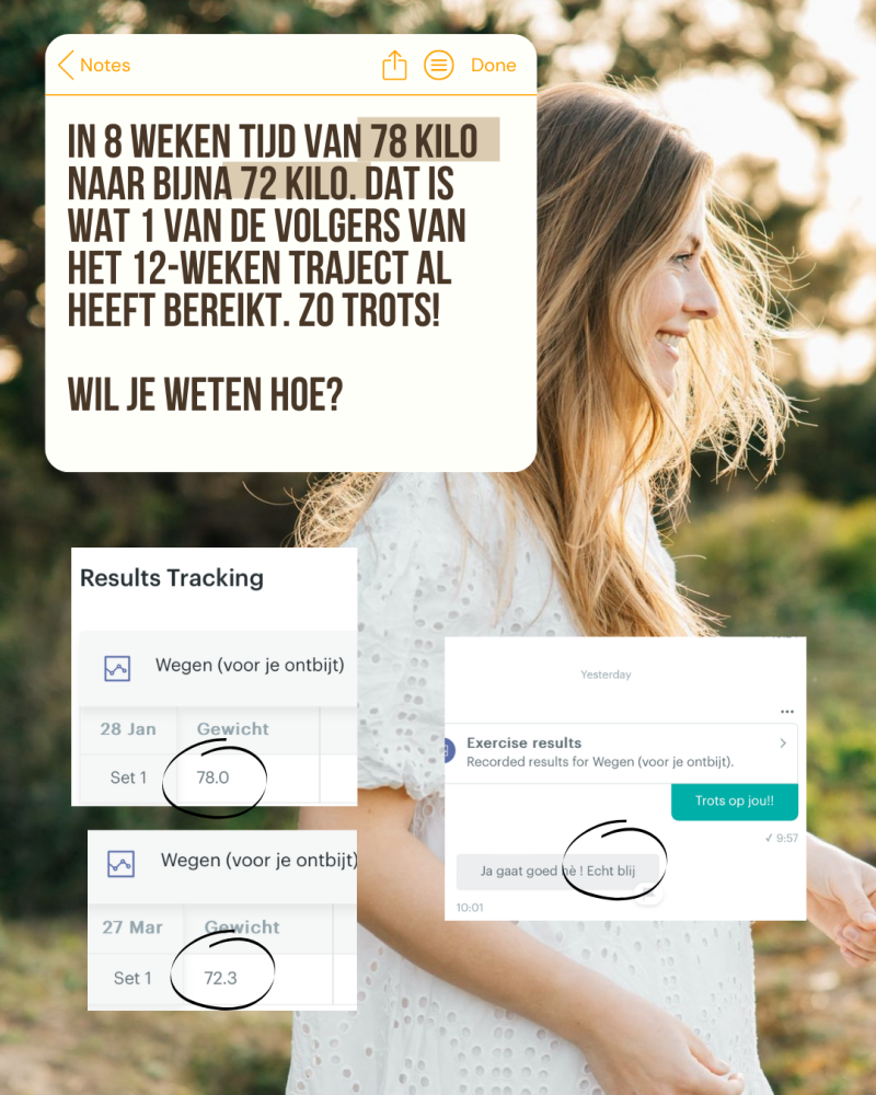 Froukje is nu 8 weken onderweg en al ruim 6 kilo afgevallen! Dat is pas een resultaat! En dan hebben we nog 4 weken te gaan. Ben jij benieuwd naar het eindresultaat? Blijf op de hoogte via deze Blog of mijn Instagram!
